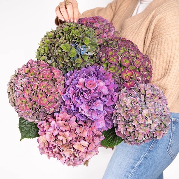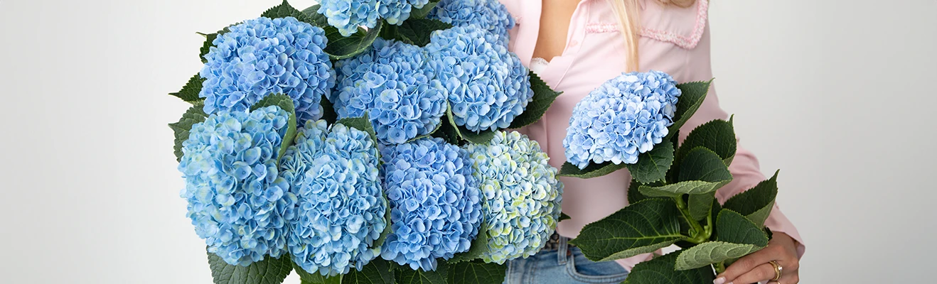 Hi, flower friends! Today, we're talking about the real stars of the flower world: Hydrangeas. These flowers are famous for their big, colorful blooms that look like lots of tiny butterflies. They’re perfect for adding something special to any bouquet or flower arrangement. Whether you're a pro florist or just starting out, it's hard not to love Hydrangeas. But did you know there's more to these flowers than just how pretty they are? Let's find out more! We visited one of our Hydrangea growers named ‘de Munck’, and worker Ferry told us some interesting things that we want to share with you, so we made the perfect ‘How to prep your Hydrangeas’ guide!